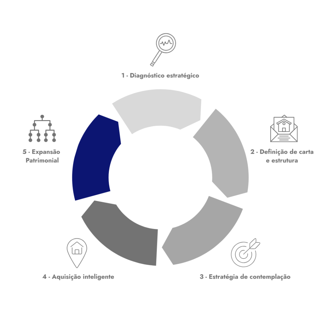 Começamos com uma análise do seu momento e objetivos. Definimos a carta ideal e estruturamos a estratégia de contemplação. Após a contemplação, orientamos a aquisição do imóvel dentro do seu plano patrimonial.